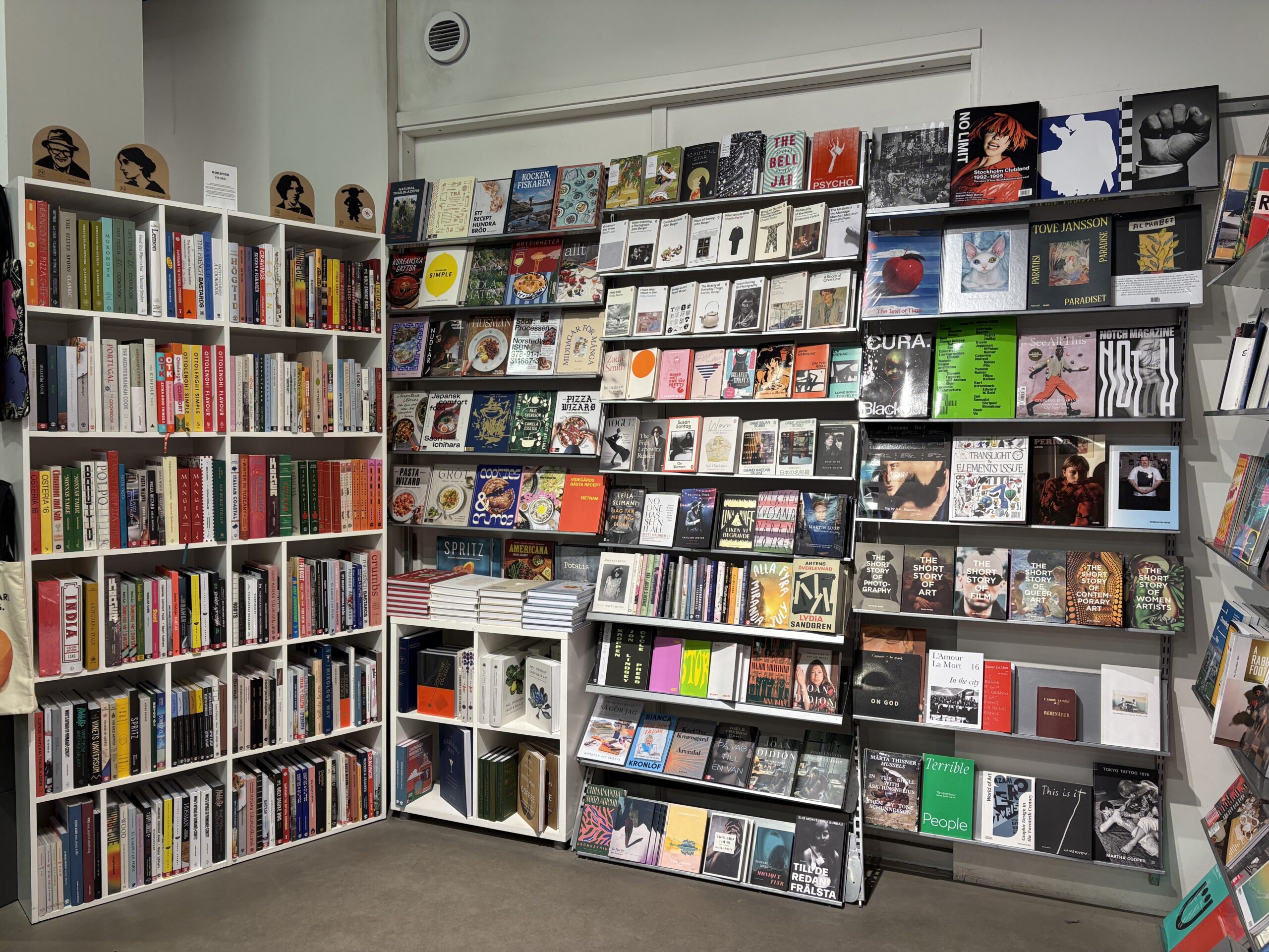 Ég verð bara að nefna bóksalann á horninu. Ég bý í næsta húsi við hann í Södermalm hverfinu og heimsótti hann fyrstu vikuna mína í Stokkhólmi. Ég tek ofan af fyrir fólki sem opnar bókabúðir á þessum tímum þar sem barist er um athyglina og vil styðja við sjálfstæða bóksala. Getum við kannski bara hætt að koma með vínflösku í matarboð og komið með bók í staðinn? Nei bara hugmynd. Hér eru nokkrar hillur með enskum bókum, skemmtilegar barnabækur og smábarnabækur á sænsku (tilvaldar til að æfa börnin í skandinavísku) og ágætis úrval af spilum og púslum.